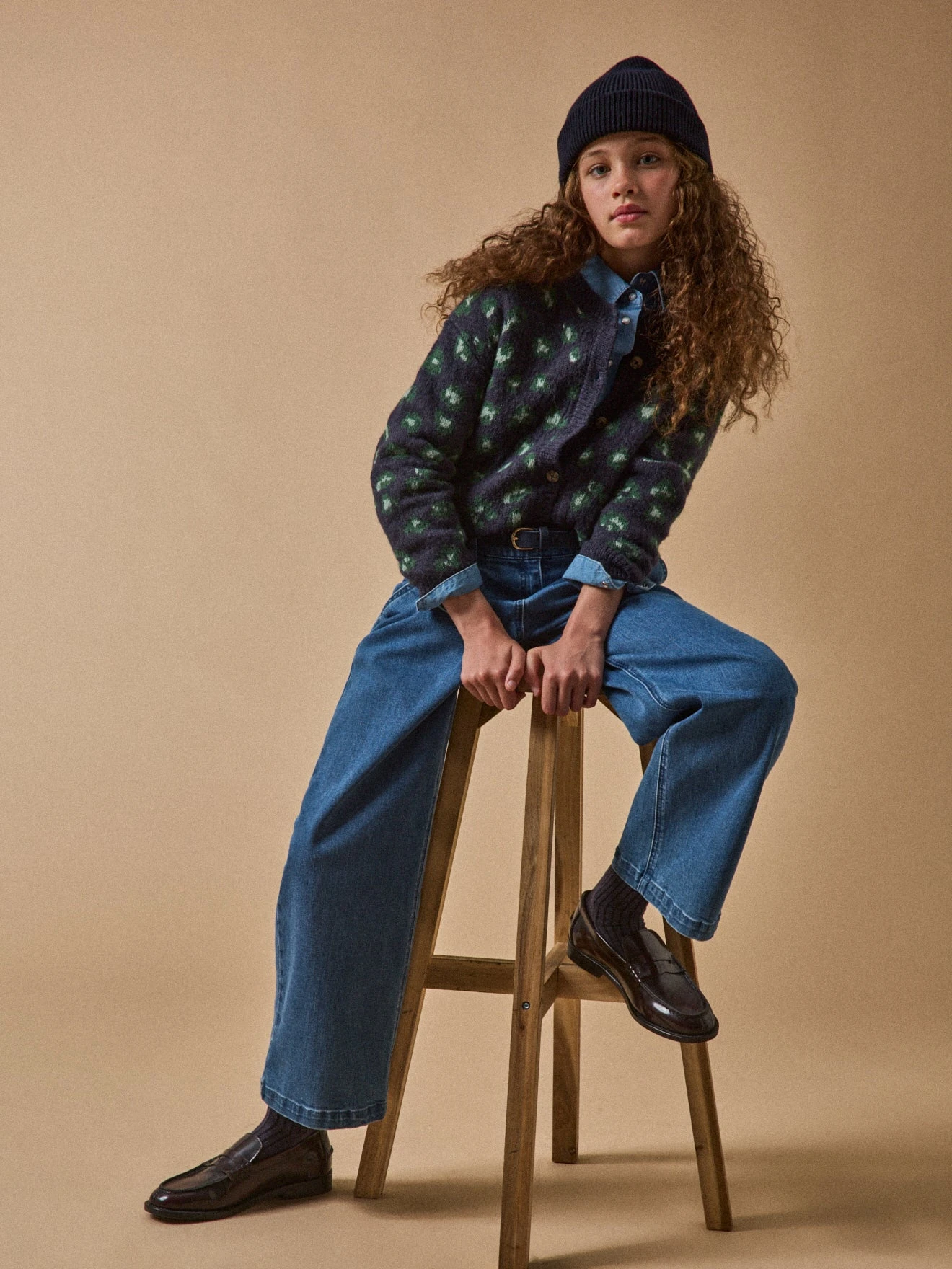 Un motif léopard revisité dans un nouveau coloris, ce cardigan apporte une note de fantaisie au dressing des filles.