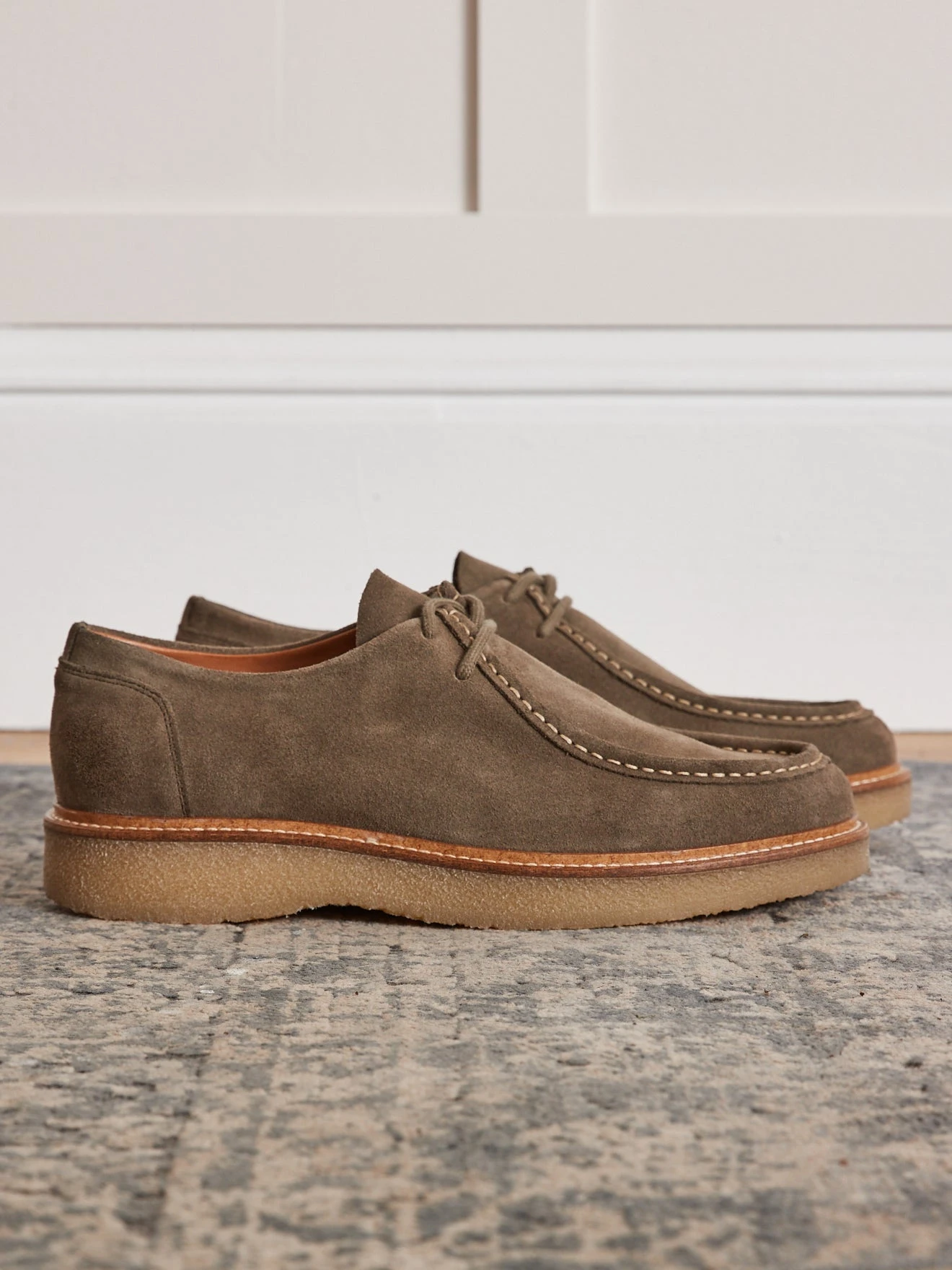 Elles jouent la tendance kaki sur un cuir velouté. Aussi à l’aise en ville qu’en week-end, les derbies mettent un point final à une silhouette sport chic.