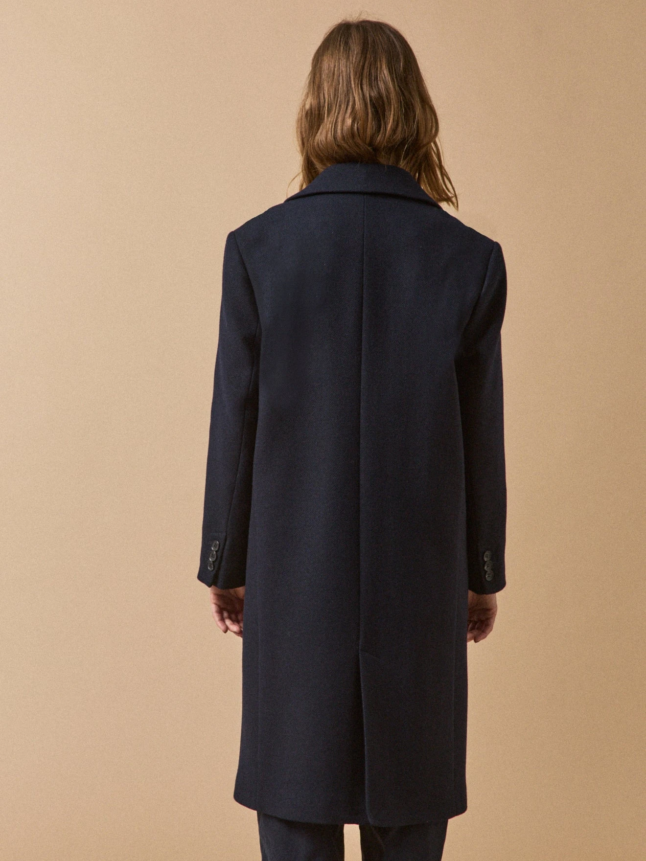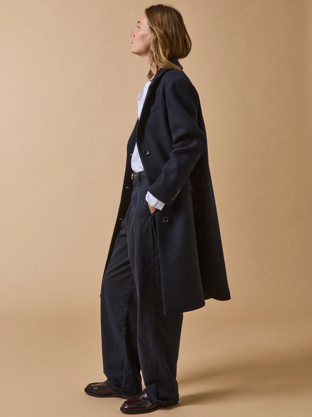 Hérité du vestiaire masculin, le manteau allie à la fois élégance féminine et inspiration pardessus. Celui-ci offre une construction épurée, droite et longue, dans un très beau lainage armuré de la maison italienne Manteco. Un style parfait pour un look urbain chic et durable.