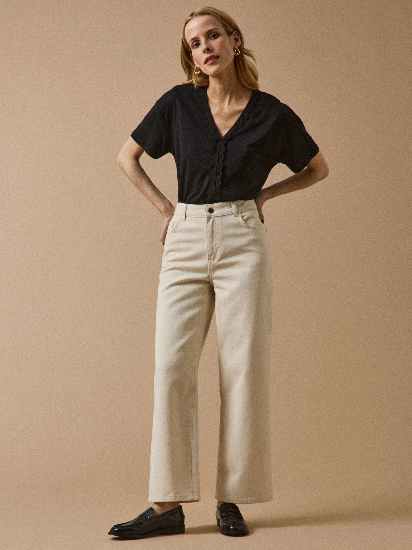 Maille souple et douce en lyocell et coton. Touche de dentelle. Coloris chics et tendance. Un T-shirt en mode féminin confectionné au Portugal.
